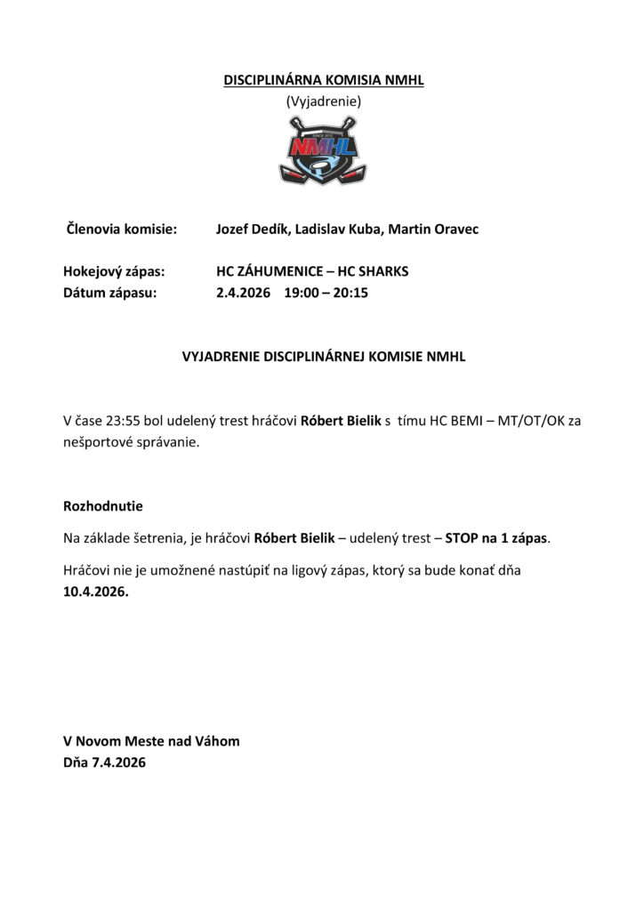 NMHL vyjadruje pozostalým smútiacim, rodine, priateľom, známym a nášmu klubu HC SHARKS úprimnú sústrasť. ![]()